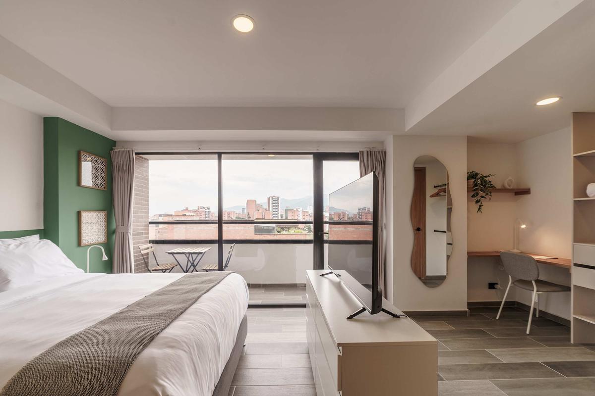 Enjoy a comfortable and modern stay in this one-bedroom loft located in one of Medellín's most desirable and convenient areas. Ideal for couples, business travelers, or tourists seeking comfort, style, and an excellent location. It features a queen bed, a full bathroom, a spacious living and dining area, and all the amenities you need for a pleasant stay. Just minutes from restaurants, cafes, parks, and the city's main attractions.