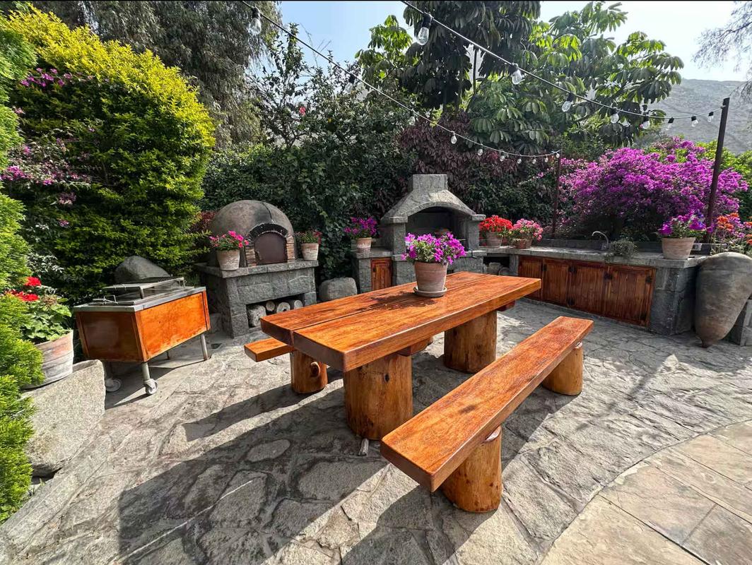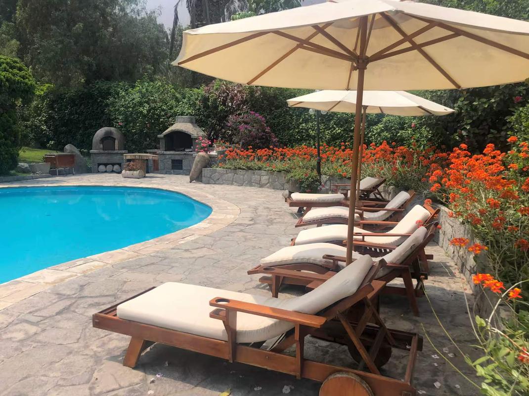 Relax in this beautiful house located in Chaclacayo, perfect for enjoying time with family or friends. The property features 4 bedrooms and 4 beds, offering a comfortable and cozy space for a peaceful stay. The house includes a fully equipped kitchen, a spacious and bright living room, and an additional TV lounge—perfect for sharing moments together after a day of отдых. Outside, you’ll find a lovely swimming pool, ideal for cooling off and relaxing, along with sun loungers to enjoy the weather. There is also a barbecue area and a traditional clay oven, perfect for preparing meals outdoors and creating unforgettable memories. A perfect place to disconnect from the city and enjoy the tranquility of Chaclacayo.