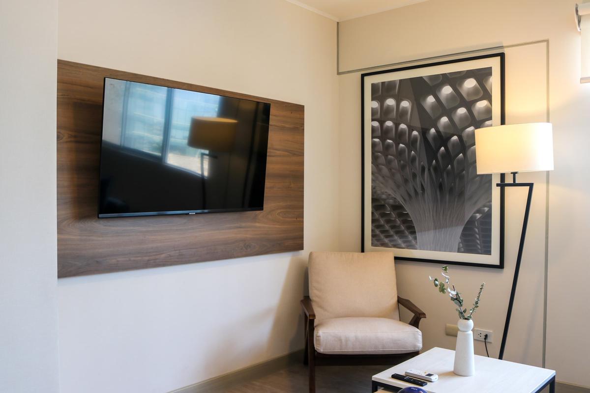 Located in the center of San Isidro's financial district, this beautiful apartment features premium queen size bedding and a comfortable living room equipped with a modern smart TV. In the area you’ll find high end restaurants recommended by critics and locals, such as San Ceferino (Italian), Astrid & Gastón (Peruvian + International Fusion), and Celeste Solar Bar. See “The Neighborhood” section for information on more restaurants, convenience stores and pharmacies nearby.