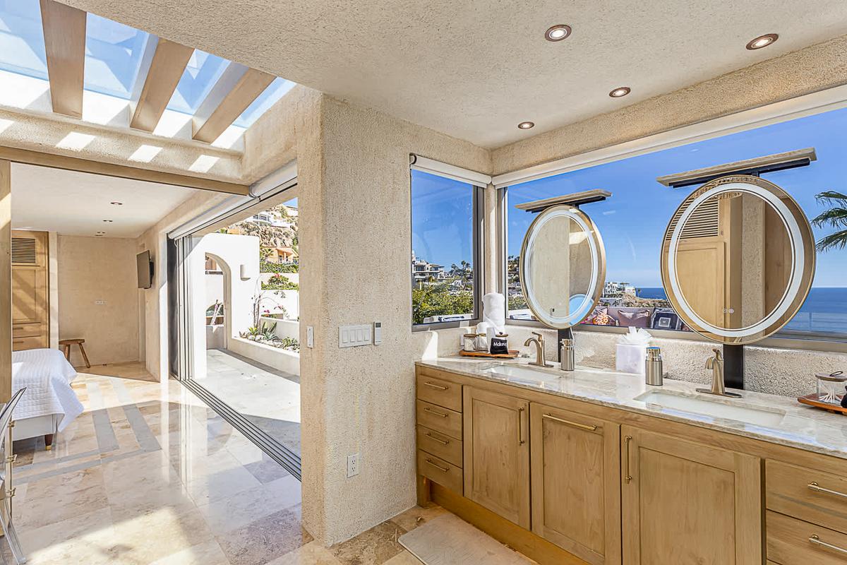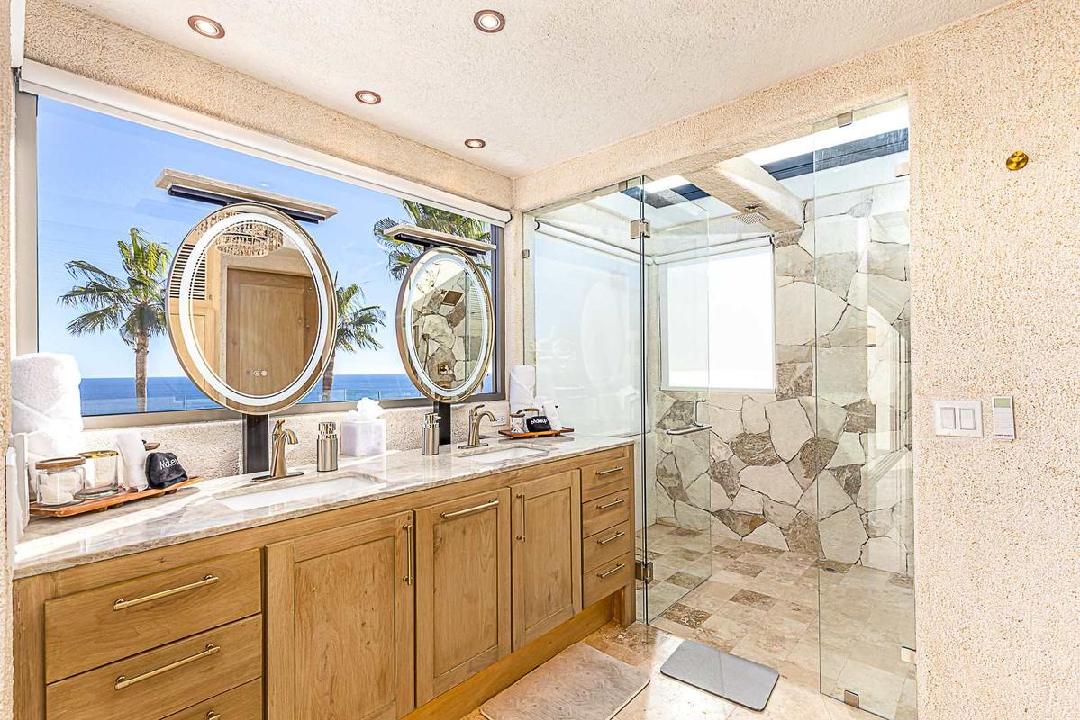 Casa Dos Hermanas is a spectacular five-bedroom, six-bathroom luxury villa located in the exclusive private community of Pedregal, offering breathtaking 180° panoramic views of the Pacific Ocean. Designed to fully embrace indoor–outdoor living, the villa provides total privacy, spaciousness, and comfort—perfect for families or groups of friends seeking an exceptional luxury experience in Cabo San Lucas. The villa features five expansive suites, each with a king-size bed, private en-suite bathroom, and a private balcony with ocean views. Three of the bedrooms include outdoor showers, creating a unique connection with the natural surroundings. Every space in the home enjoys open views of the Pacific and a constant sense of tranquility and exclusivity. The social areas are designed in an open-concept layout that seamlessly integrates the living room, dining area, and fully equipped kitchen. Large windows open directly onto the outdoor terraces, making these spaces ideal for sharing special moments—whether enjoying a private dinner at home or taking in Cabo San Lucas’ unforgettable sunsets. Outdoors, the property offers a private heated swimming pool available year-round, a jacuzzi accommodating up to ten guests, and multiple terraces spread across different levels, all with privileged ocean views. Every corner of the villa has been thoughtfully designed for relaxation, disconnection, and outdoor enjoyment. During their stay, guests enjoy daily housekeeping service, a one-way airport transfer upon arrival for up to ten guests, and a private chef who welcomes them with margaritas and appetizers. The villa also features high-speed WiFi throughout, a Bose sound system connected to Sonos, and private parking. IMPORTANT INFORMATION Cancellation Policy: Free cancellation up to 30 days prior to arrival. Cancellations made after this period are non-refundable. Minimum Age Requirement: The primary guest must be at least 28 years old to book. Security Deposit: A refundable security deposit of USD 500.00 is required. The full amount will be returned after check-out, provided no damages are found. Noise Policy: Excessive outdoor noise is strictly prohibited at all times, including shouting, loud music, and the use of inappropriate language.