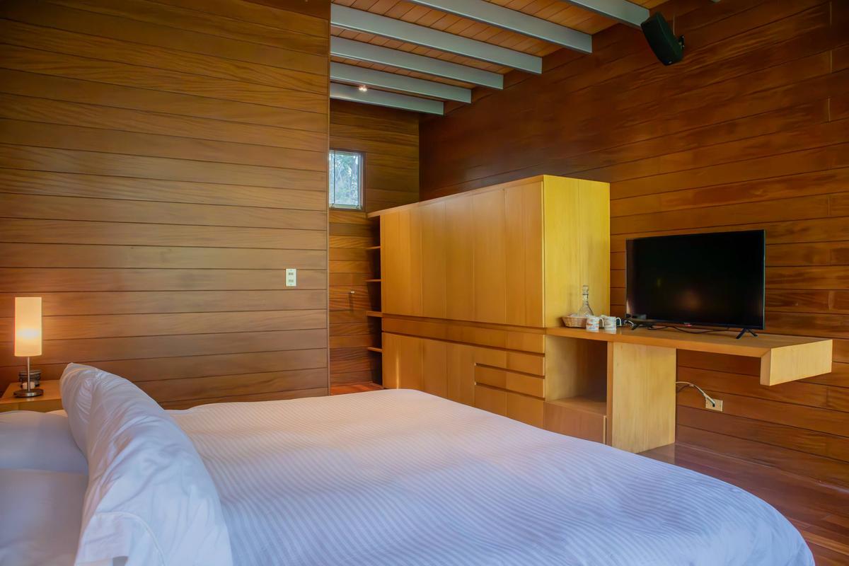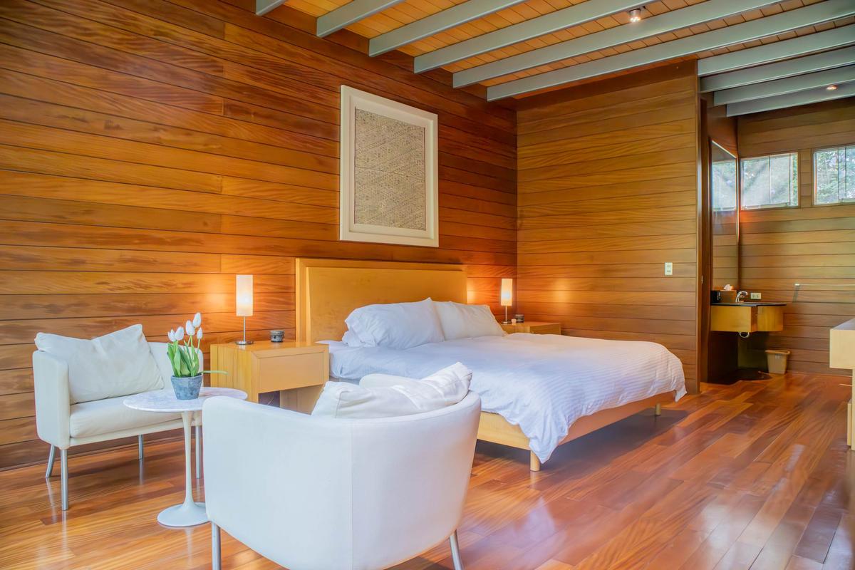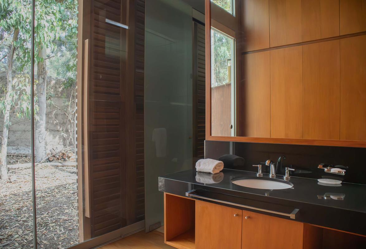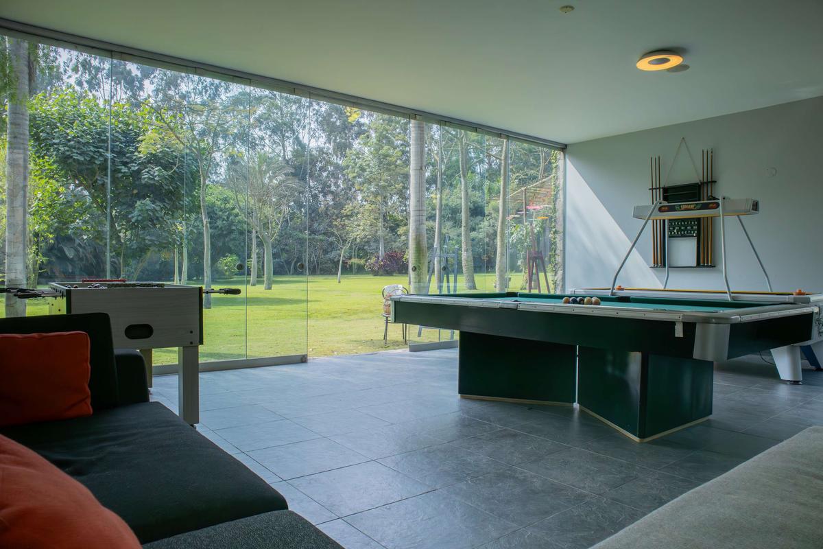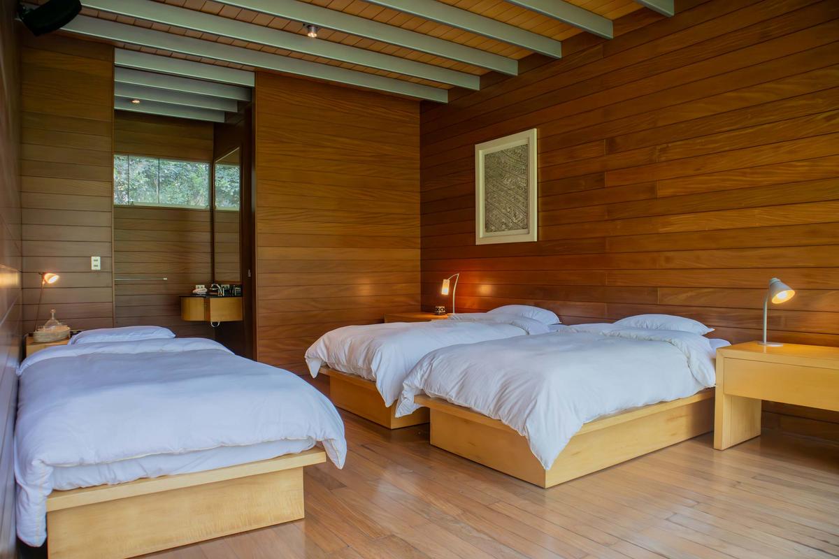 Descubre esta encantadora casa de campo, el refugio perfecto para desconectarte de la ciudad y reconectar con la naturaleza sin renunciar al confort. Con capacidad para 15 personas, es ideal para familias, grupos de amigos o escapadas especiales. La casa ha sido diseñada para brindar privacidad, calidez y descanso en cada rincón. En la casa principal encontrarás dos habitaciones acogedoras, una sala de estar con TV, comedor, cocina equipada y una sala con chimenea, perfecta para compartir momentos especiales durante las tardes o noches frescas. Todos los espacios interiores se abren hacia el jardín, permitiendo que la naturaleza esté siempre presente en tu estadía. El jardín es uno de los grandes protagonistas de esta propiedad. Ahí se distribuyen tres bungalows privados, cada uno con su propio baño, pensados para ofrecer comodidad e independencia a todos los huéspedes. También encontrarás una terraza con poltronas ideales para relajarte bajo el sol, una mesa para almuerzos al aire libre y una zona de parrilla perfecta para disfrutar de una tarde de asado en buena compañía. La propiedad abarca 17,400 m² y cuenta con un hermoso bosque de pinos privado que invita a caminar y respirar aire puro. Para las noches, la zona de fogata al aire libre se convierte en el lugar ideal para reunirse bajo las estrellas. Además, el amplio salón de juegos incluye mesa de billar, fulbito de mano y otras actividades para disfrutar entre todos. Es importante mencionar que la propiedad cuenta con personal disponible 24/7 que vive en el lugar y está siempre dispuesto a ayudarte. Junto a él vive su perro, muy cariñoso y juguetón. Somos pet friendly, pero es importante tener en cuenta que este perrito estará presente en los exteriores del alojamiento durante tu estadía. Además, junto a los bungalows encontrarás un bungalow privado que no se incluye ni ofrece dentro de la estadía. Cada detalle ha sido cuidadosamente pensado para ofrecerte una experiencia auténtica, de conexión con la naturaleza, comodidad y momentos inolvidables en un entorno privado y lleno de encanto. INFORMACIÓN IMPORTANTE *No se permiten cancelaciones después de los 15 días previos al check-in. Si deseas cancelar dentro de ese período, no habrá devoluciones. *A partir del quinto huésped, se aplicará un cargo adicional de $80.00 por persona por noche.