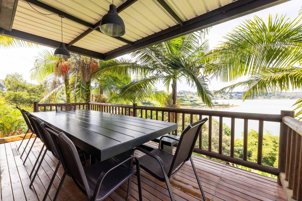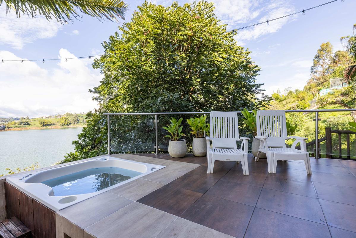 Este alojamiento tipo finca cuenta con una habitación principal que incluye cama queen, chimenea, TV, baño completo y balcón. Además, tiene una habitación con dos camas sencillas y baño completo, y dos habitaciones con cama queen, vista al lago y baño completo cada una. En la terraza encontrarás un jacuzzi con hidromasaje y una hermosa vista sobre el lago. La propiedad cuenta con dos cocinas equipadas con todo lo necesario para cocinar, además de un asador a gas. También puedes ordenar comida a la carta o solicitar una ayudante por un costo extra. La sala dispone de una chimenea de leña perfecta para disfrutar momentos cálidos con amigos y familia. Un mayordomo está disponible hasta las 8 pm para atender cualquier necesidad que tengas.