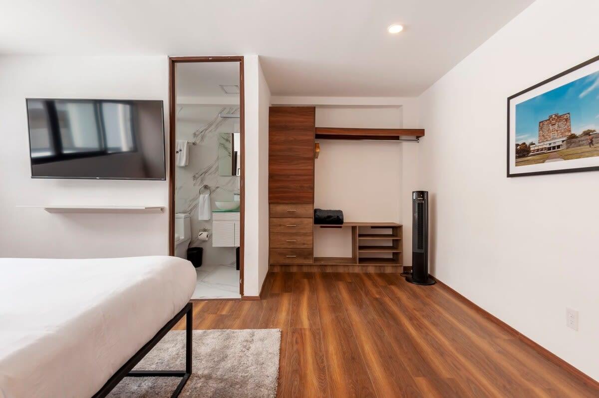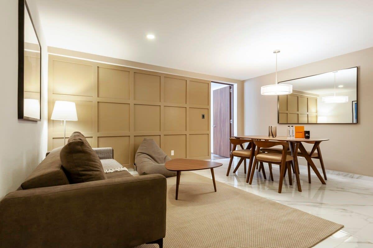 This fully remodeled 1 bedroom apartment is located in the heart of Polanco, a few blocks away from Avenida Presidente Masaryk, the premier shopping street of Mexico City. You'll be surrounded by exclusive stores and upscale international restaurants. This area's leafy side streets host Spanish Colonial Revival mansions and luxury apartments.
