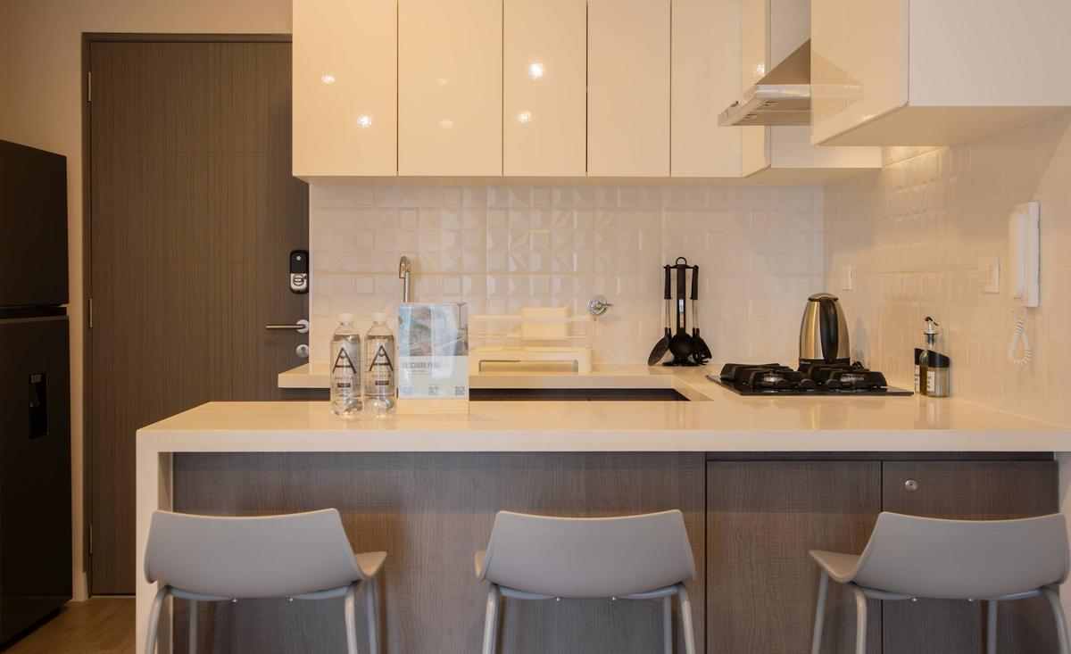 This premium property is located in a neighbourhood that combines peaceful residential spaces with a vibrant commercial and gastronomic scene. You’ll find a variety of restaurants, cafés, and shops nearby, making it a convenient place for both residents and visitors. The area is also close to parks and green spaces, offering a pleasant environment for outdoor activities. Miraflores is known for its safety, modern infrastructure, and cultural attractions, including art galleries, museums, and historic sites. Additionally, its proximity to the Malecón provides stunning ocean views and a great place to enjoy Lima’s coastal charm Keep in mind, due to natural gas regulations, there is an open duct in the apartment that cannot be closed.
