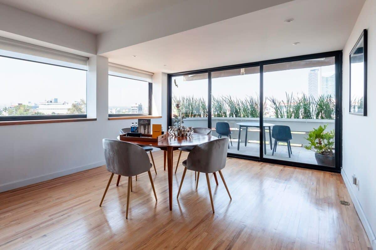 This 3BR is located in the beautiful district of Condesa home to yoga classes, young couples and skateboarding teens, is the heart of the stylish yet easygoing Hipódromo. Art deco apartment buildings and vibrant street art define the neighborhood's winding, tree-lined thoroughfares. This amazing triplex an amazing living room with stunning view and a stunning balcony with a beautiful view.